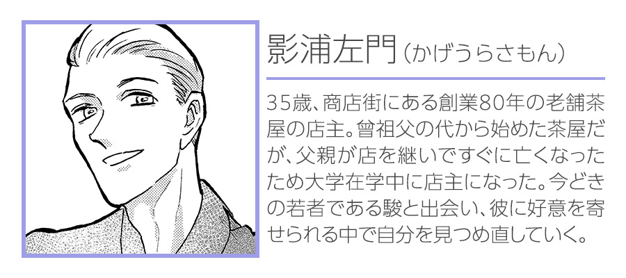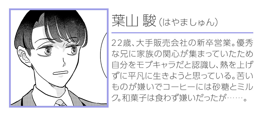 何事にも冷め気味の現代っ子新人営業・葉山 駿。クライアントへの手土産を買いに向かった和菓子屋で、駿は不思議な雰囲気の男・景浦左門に出会うが・・・・・・。年下のアタックと年上の駆け引き、ほろ苦くて甘いラブストーリーが登場!